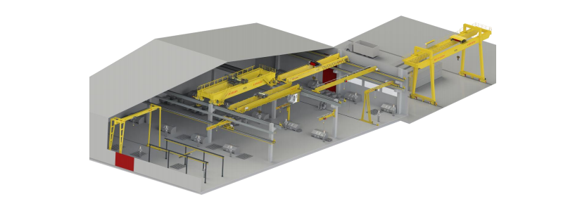 Our main product range includes European-style’s overhead cranes, gantry and semi-gantry cranes, JIB cranes, wall-travelling JIB cranes, and workstation cranes. We also provide fully automated intelligent crane systems for paper rolls, cable rolls, steel coils, bulk bags, and ladle. Additionally, we offer specialized cranes for industries such as metallurgy, foundry, forging, quenching, and nuclear power, along with electromagnetic cranes, grab cranes, explosion-proof cranes, and insulated cranes. Our product line also includes overhead transport systems for aircraft engines, multi-pivot suspension cranes in aircraft hangars, and teleplatforms.