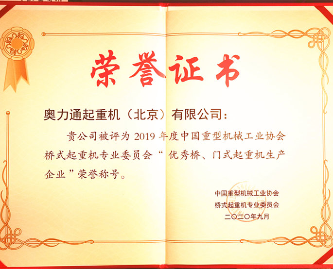 十月是个美好的月份,也是秋高气爽的好日子,金桂飘香,硕果累累,是有耕耘、有收获的季节。协会为表扬先进、树立典型、引领和推动行业向更高层次发展,对年度“优秀桥、门式起重机生产企业”进行了隆重表彰。球速体育起重机(北京)有限公司有幸荣获2019年度“优秀桥、门式起重机生产企业”荣誉称号。